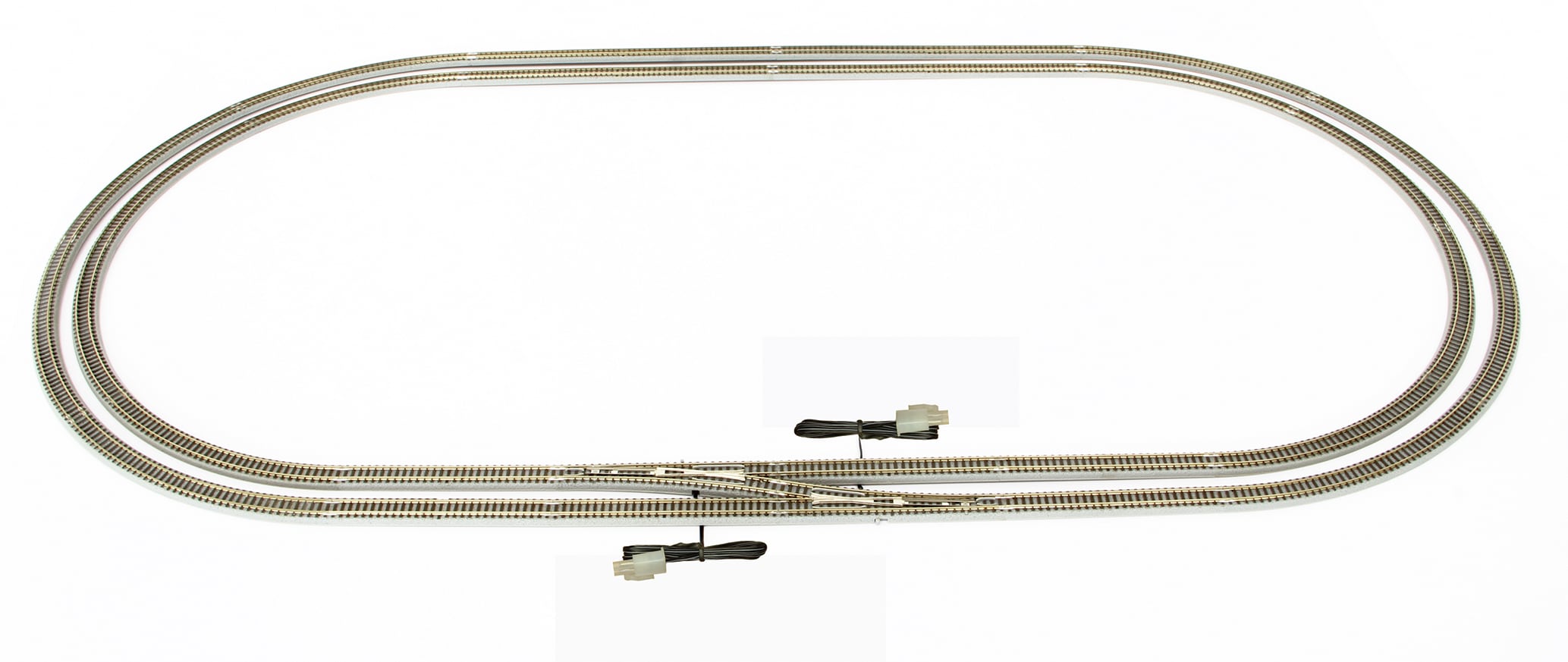 ■セット内容:直線レール110mm×6(カット済み×2)、220mm×4、曲線レールR195-45°×8、R220-45°×8、ポイントレール110mm右×2、リレーラー×1